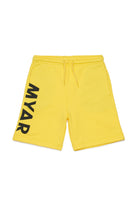 Shorts mit Logo und Kordelzug in der Taille, gefertigt aus weichem Stoff. Das Modell präsentiert ein kontrastierendes Grafikmotiv am Bein.