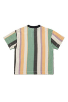 T-Shirt aus 100% Baumwolle mit Logo und vertikalem Streifenmuster.