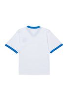 T-Shirt mit aufgedrucktem Logo aus 100% Baumwolle. Sie verfügt über ein V-Ausschnitt-Design und kontrastierende Abschlüsse an Kragen und Ärmeln.