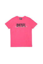 T-Shirt mit klarem Schnitt, ideal für alle, die einen schlichten und vielseitigen Stil suchen. Das Diesel-Logo auf der Brust setzt einen markanten Akzent, während Rundhalsausschnitt und kurze Ärmel für einen bequemen Sitz bei jeder Gelegenheit sorgen.
