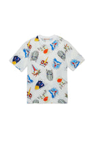 Kurzarm-T-Shirt aus weichem Baumwolljersey mit Allover-Grafik von Jungle. Die Lebendigkeit des Drucks macht es perfekt, um jedem Look einen Hauch von Farbe und Originalität zu verleihen.