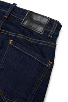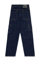 Dunkelblaue, regular fit Loose Jean Jeans. Sie hat einen geraden, gleichmäßigen Schnitt über das ganze Bein hinweg. Eine von der Arbeitskleidung inspirierte Denim mit einem cleanen Look.