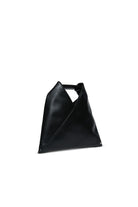 Japanische Mini-Tasche aus beschichtetem Stoff. Gekennzeichnet durch eine dreieckige Silhouette und das Vorhandensein von Knöpfen an den Rändern, die es der Tasche ermöglichen, ihre Form zu ändern, indem sie auf verschiedene Arten gefaltet wird, ein klarer Verweis auf den ästhetischen Code der französischen Maison. Der Griff hat einen Lederteil mit einem numerischen Logo. Es ist das emblematischste Accessoire von MM6, das aus der Erwachsenenkollektion stammt.