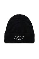 Mütze aus einer Wollmischung in Rippenstrick mit kontrastierendem gesticktem N°21 Logo am Umschlag. Weich und anschmiegsam ist sie das perfekte Accessoire, um an kälteren Tagen Stil und Komfort zu bieten.