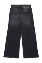 - Schwarzer Denim mit Used-Effekten und kontrastierenden Nähten