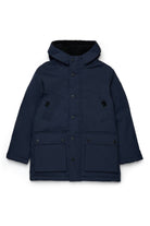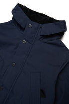 Lange gefütterte Jacke aus Nylon mit Diesel-Patch auf der Schulter. Wattierung aus Kunstdaunen mit Kapuze. Verdeckter Reißverschluss vorne, vier Taschen vorne.