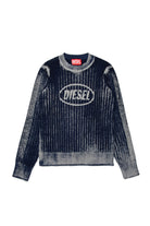 Rundhalspullover mit kontrastierendem Frontlogo und Rippstrick.