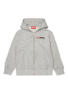 Langärmeliges Sweatshirt mit Reißverschluss und Kapuze mit unverwechselbarem Charakter. Das Diesel Denim Division Logo, das durch einen Wasserspritz-Effekt aufgewertet wird, verleiht einen dynamischen und modernen Look. Ein Kleidungsstück, das Komfort und Stil vereint.