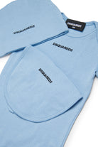 Geburtsset aus Mikrorippenstrick. Bestehend aus einem kurzärmeligen Body, einer Mütze und einem Lätzchen. Alle Artikel sind mit dem Dsquared2-Logo versehen und bestehen aus 100% Baumwolle. Das Set wird in einem Geschenkkarton geliefert.