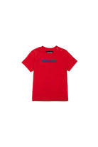 T-Shirt aus 100% Baumwolle mit Dsquared2-Logo auf der Brust. Das Modell verfügt über kurze Ärmel und eine praktische Knopfleiste an der Schulter.