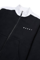Sweatshirt mit durchgehendem Reißverschluss, appliziertem Logo auf der Brust und kontrastierenden Details an den Schultern.