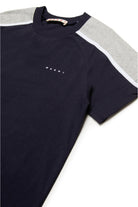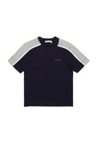 Kurzärmeliges T-Shirt mit Rundhalsausschnitt aus Jersey mit Colorblock-Details und kontrastierenden Paspeln. Institutionelles Logo auf der Vorderseite auf der Herzseite. Hergestellt aus 100% Baumwolle. Ein sportlich inspiriertes Kleidungsstück, das für verschiedene Anlässe geeignet ist.