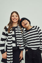 Langärmelige Strickjacke aus weichem Wollmischgewebe mit unterschiedlich hohen Streifen, die dem Kleidungsstück Originalität verleihen. Ein kleines rotes Herz, das auf die Brust gestickt ist, sorgt für einen romantischen und unverwechselbaren Touch.