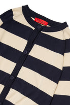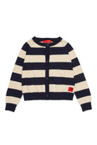 Cardigan aus 100% Baumwolle mit Streifen und appliziertem Logo am Saum. Ein ikonisches Kleidungsstück mit Knopfleiste vorne und kontrastierenden Details.