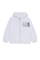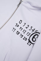 Sweatshirt mit Kapuze und langen Ärmeln und durchgehendem Reißverschluss. Das kontrastierende Hand Written-Logo, das auf der Herzseite platziert ist, drückt die MM6 DNA mit einer essentiellen und unverwechselbaren Ästhetik aus. Perfekt für einen lässigen Look mit einem authentischen Touch.