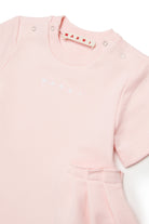Vestido corto con logo y pliegues laterales. El diseño se completa con un inserto elástico para facilitar el ajuste.