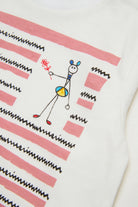 Camiseta de manga larga confeccionada en suave jersey de algodón, con un colorido y alegre gráfico en la parte delantera y un logotipo cursiva integrado en el estampado. Una prenda pensada para aportar un toque original y creativo a los looks cotidianos.