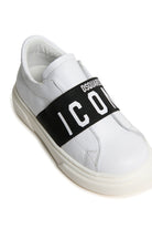 Zapatillas bajas sin cordones con elástico con logotipo en contraste Dsquared2 ICON. Maple Leaf impreso en la parte trasera. Pala de cuero de becerro y forro interior. Suela de goma termoplástica. Realizadas en Italia.