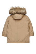 Una parka de invierno con acabado brillante diseñada para hacer frente a las temperaturas más frías. La capucha de peluche presenta un detalle de pelo sintético desmontable. Está enriquecida con funcionales bolsillos de velcro y un práctico cordón interno para ajustar el ajuste.