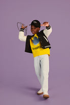 - Logo college bordado en la espalda y parche en el pecho
