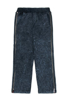 Pantalones de felpa con efecto jaspeado. Las cremalleras laterales permiten ajustar el corte y abren nuevas posibilidades de estilo, dejando al descubierto el interior de franela a cuadros: un detalle inesperado que transforma el look con un toque atrevido y sorprendente.