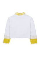 Sudadera con cremallera completa y logo aplicado en la parte delantera. La prenda está embellecida con detalles de crochet en el cuello y los puños para un toque original.