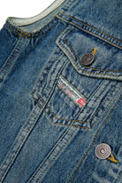 Chaleco de denim con logo. La prenda presenta una construcción sin mangas, bolsillos aplicados en el pecho y cierre frontal con botones. El artículo está confeccionado en 100% algodón.