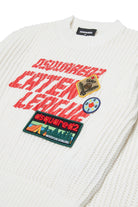 Jersey de cuello redondo en 100% algodón con maxi logo y parches aplicados en la parte delantera.