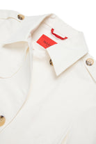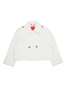 Chaqueta cropped cruzada con el logo bordado en el puño. El modelo presenta hombros estructurados, botones en los hombros y cierre frontal.