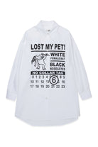 Vestido maxi camisero de popelín con gráficos "Lost My Pet", inspirados en los carteles de objetos perdidos. Una prenda icónica que expresa el ADN de la marca, ideal para looks informales originales.