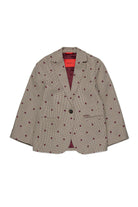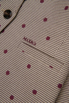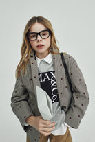 Chaqueta blazer oversize de manga larga en pata de gallo a lunares. Una refinada mezcla de estampados confiere a la prenda un aspecto fuerte con una actitud contemporánea. También es perfecta para fiestas y ocasiones especiales.