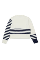Jersey de manga larga en mezcla de lana. El juego de rayas asimétricas y las aberturas laterales hacen de este modelo una elección original, ideal para los meses más fríos.