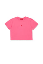 Camiseta de suave punto de algodón de manga corta y corte ligeramente recortado. El bordado en forma de corazón añade un delicado detalle, perfecto para looks informales.