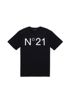 Camiseta de cuello redondo y mangas cortas, con logotipo Nº21 negro en contraste. Confeccionada en 100% algodón.