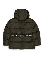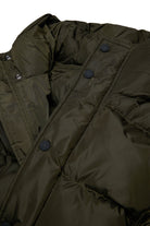 Cazadora acochada larga de nailon brillante. Acolchado clásico a rayas. Relleno de falso plumón. Capucha fija. Lleva un cinturón con el logo de la marca en contraste de color. Diseño urban en el lado izquierdo de la parte delantera. Cierre doble, con cremallera y botones. Bolsillos verticales en la parte delantera. Puños de punto elástico. Interior forrado. Un must adaptado para todo tipo de ocasiones.