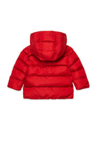 Chaqueta acolchada larga de nylon brillante con capucha. El logotipo de Dsquared2 en contraste a lo largo del cierre le da un toque icónico y reconocible al instante.