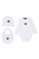 Conjunto para bebé de suave microtejido con body, gorro y babero a juego. El conjunto viene en el interior de una original caja de regalo.