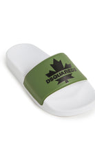 Chanclas slip de diseño moderno. Con la marca del logotipo Maple Leaf en color a tono. Exterior de PVC. Suela de poliuretano en contraste de color. Realizadas en Italia.