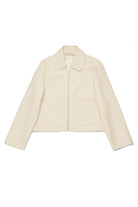 Chaqueta en tejido revestido de corte femenino y contemporáneo, realzada por una cremallera frontal con cinta en color de contraste. Perfecta para cualquier ocasión, es la prenda ideal para quienes buscan estilo y comodidad.