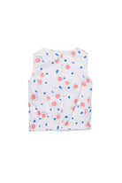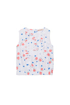 Camisa sin mangas con logo y motivo floral integral, enriquecida con volantes frontales.