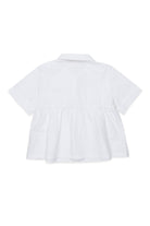 Camisa de manga corta con logo y bajo fruncido en 100% algodón. Un modelo de diseño fresco y moderno.