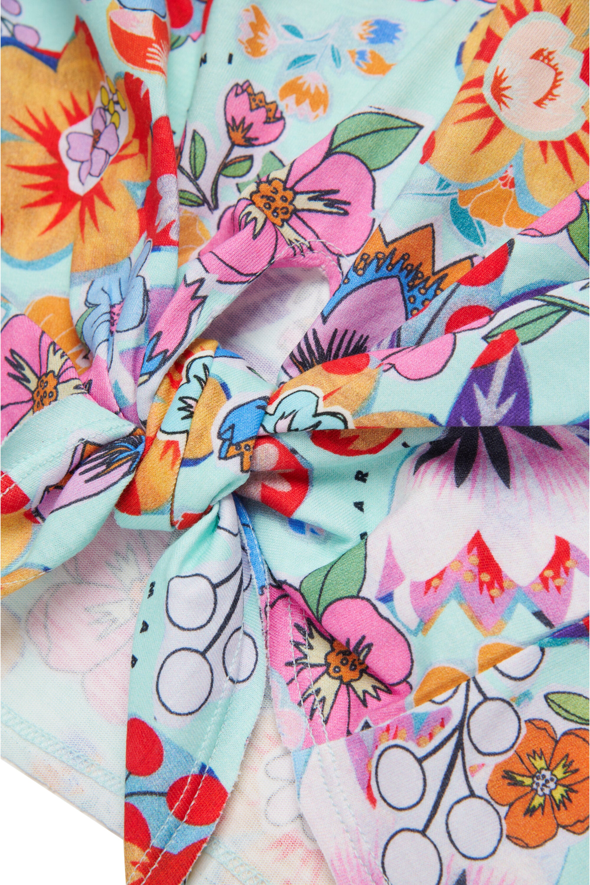 Camiseta sin mangas de cuello redondo de jersey con estampado en toda la superficie Holiday. Lleva un nudo fijo en la parte delantera. Realizada en 100% algodón. Cualquier diferencia entre el artículo fotografiado y el que recibirás es un símbolo de la fina elaboración, la calidad y la singularidad del producto.