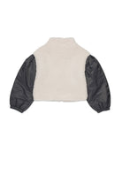 Cazadora bomber de peluche con mangas en contraste