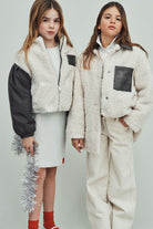 Cazadora bomber de peluche con mangas en color de contraste. Un look atrevido y contemporáneo, perfecto para quienes buscan una prenda práctica pero con carácter.