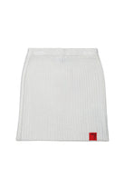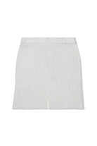 Falda corta de punto de mezcla de lana. Una prenda de espíritu moderno, con un punto acanalado que realza la silueta realzada por un acabado mylar. Ideal para fiestas y eventos nocturnos.