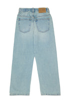 Jeans regular en denim claro con leves abrasiones efecto usado y parche decorativo aplicado en las piernas.