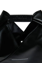 Mini bolso japonés en tela recubierta. Caracterizado por una silueta triangular y la presencia de botones en los bordes que permiten que el bolso cambie de forma doblándolo de diferentes maneras, una clara referencia al código estético de la Maison francesa. El mango tiene una parte de cuero con un logotipo numérico. Es el accesorio más emblemático de MM6, extraído de la colección para adultos.