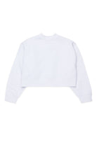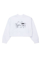 Sudadera de cuello redondo con logo y estampado en contraste en el pecho. El modelo presenta un corte cropped y la icónica costura en la parte trasera.