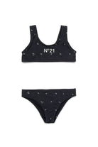 Bañador de licra con correas para los hombros. Personalizado con estampado en toda la superficie. Logotipo institucional N°21 en la parte delantera. Cordón ajustable.