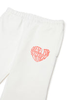 Pantalon en molleton avec logo cœur imprimé. Le modèle présente un bas légèrement évasé et un détail élastique à la taille.